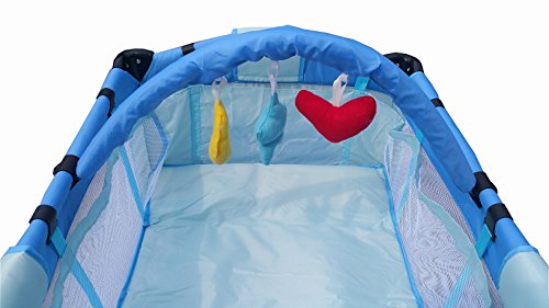 Portable Baby Fetal Travel Cot Bed Children Playpen With Entryway & Toys & Mat (Blue) is available in Travel Cots