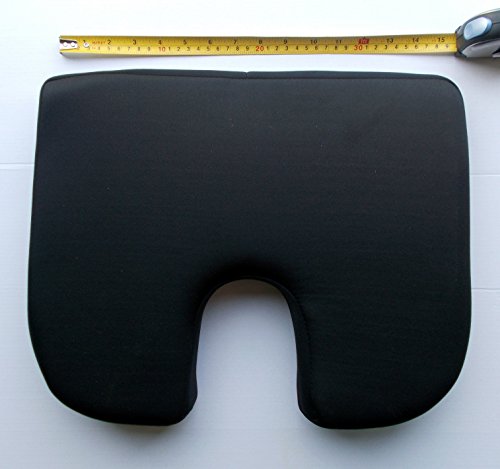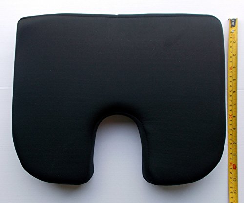 With its gently angled line to rotate the pelvis and reduce lower back strain and it's coccyx relief channel this cushion helps prevent soreness and fatigue associated with sitting for long periods of time. While being firm enough to provide support, it is soft enough to be comfortable. With its light weight breathable cover it's great for the car, home or office. The cushion is approximately 7cm thick, 34cm in length and 40cm at its widest point.