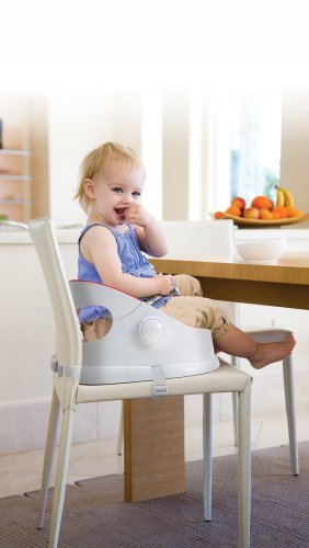 It’s got a 3 point harness and dual strap system to attach it safely to a chair, a non-slip base to protect from slipping or scratching furniture, plus the tray can be removed to get closer to the table.