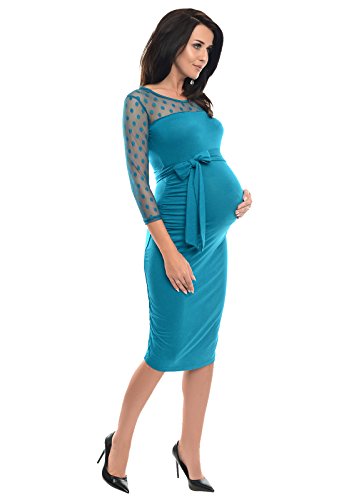 Purpless Maternity Pregnancy Dress With Sheer Mesh Panel SFD008 (8, Turquoise) is available in Dresses
