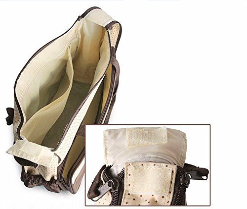 5 pcs Set: 1 x Large Bag, 1 x Small Bag, 1 x Bottle Pouch, 1 x Small Pouch, 1 x Changing Mat, Adjustable strap max size 98 cm.
