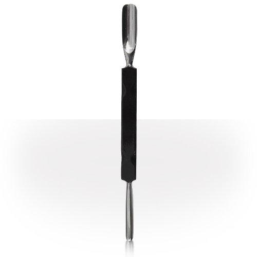 Our brand new black double cuticle pusher is essential in any good manicure set. Brought to you with a funky black design all over, this nail tool allows you to bring a professional yet unique twist to your salon. Designed with an ultra slim shape, this is perfect for storing in your nail kits and will certainly not take up a lot of room when it comes down to transportation of your nail tools. Cuticles are extremely important for keeping bacteria and infection away from the nails, so when using a cuticle pusher it is essential you do not push down on the cuticles as this can damage the root of the nail. Finished with a double ended design in two different sizes, this black double cuticle pusher can be used effectively by professionals or at home on many different nail sizes. The different edges allow you to perform to the best of your ability without damaging clients nails and also ensure the task doesnt become any more difficult or time consuming. Cuticle tools are used when preparing for nail extension or manicures, so whether you are using this tool professionally at home, it is advised you only use these when in preparation for any of these nail procedures. Essential within any good manicure set, a cuticle pusher is one of the most used tools within nail kits. Making the nails look longer and perfectly groomed, this black double cuticle pusher will benefit your personal appearance as well as keeping infections and bacteria away from the nails. Designed with grooved edges, when using this cuticle pusher you can be sure you wont slip giving your nails the finishing results you are after. As one of the most used tools within a good manicure set, order your black double cuticle pusher from Roo Beauty today.