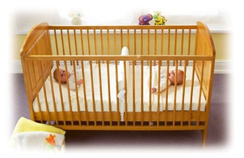 The Safababy has been designed in accordance with the experts advice in keeping your baby in the feet to foot position which is believed to reduce the risk of cot death otherwise known as Sudden Infant Death Syndrome or SIDS. The Feet-to-Foot position is the recommended sleeping position by midwives for babies. However there is a risk of baby wriggling free from the foot of the cot and becoming cold so the Safababy Sleeper has been designed to prevent this from happening. As it is fully adjustable, it can be positioned according to the size of the baby anywhere in the cot or cot-bed, creating a false foot and a snug environment for baby to sleep. The security strap, which fits underneath the mattress, ensures that blankets are held securely in place. As baby grows, the Safababy Sleeper is re-positioned further down the cot, allowing correct Feet-to-Foot positioning until baby can sit up unaided. Features Suitable for twins in one cotbed Promotes the feet-to-foot sleeping position Helps to promote security and comfort for new born babies Adjusts to fit cots, cot beds and all bar configurations Makes blankets and top sheets safe again Suitable from birth - 7 months approx The Saferbaby "Sleeper" has been extremely popular with parents of twins. Parents wanting their twins to share a bed but not face-to-face, have purchased the "Sleeper" to achieve just that, whilst maintaining the "feet-to-foot" position. This also allows the locating of the twins more easily in the parents room with the use of a single cot or preferably cot bed. Promotes the 'feet-to-foot' sleeping position Adjusts to fit cots, cot beds and all bar configurations Makes blankets and top sheets safe Helps to promote security and comfort for new born babies Suitable from birth until approximately 7 months, depending upon the individual babies development (Many parents find they are able to use the Sleeper for much longer than 7 months) Available in White, Pink and Bue