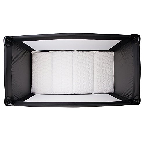 The Safetots Sleep and Go Travel Cot Black with Deluxe Mattress provides a comfortable and safe place for baby to play and rest wherever you may be. The travel cot features two wheels to make it easier to move from room to room when keeping an eye on baby as well as a handy carry bag for easy transportation. The deluxe mattress is double ventilated for easy breathing and super soft with its quilted microfibre cover. Travel cot features: Standard size travel cot, Two fabric sides and two mesh sides, Padded bumper rails, Two feet and two wheels with brakes, Comes with standard mattress pad, Easy and quick assembly, Folds down in seconds for easy transportation, Comes with carry bag, Suitable from birth, Conforms to Safety Standards EN716:2008 and BS7177, Dimension when in use: 120(L) x 60(W) x 74(H) cm, Dimension when folded: 75.5(L) x 20(W) x 21(H) cm, Weight: 9.4kg. Deluxe Mattress features: Super soft, Quilted microfibre cover/fabric, Double ventilated foam pad, Anti-bacterial, anti-fungal, anti-dust mite and air permeable, Machine washable cover, Comes in a travel case, Dimensions (cm): 120(l) x 60(w) x 3(d), Note: Ensure that the mattress is the correct size and that any gaps at the sides and ends are less than 4cm.