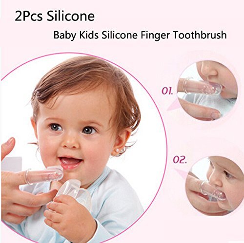 2 x Kids Soft Safe Silicone Finger Toothbrush