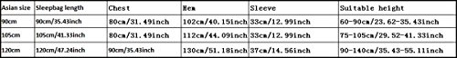 Dimensions: 90cm/35.43inch(sleepbag length); 80cm/31.49inch(chest); 102cm/40.15inch(hem); 33cm/12.99inch(sleeve length); 60-90cm/23.62-35.43inch(suitable height)