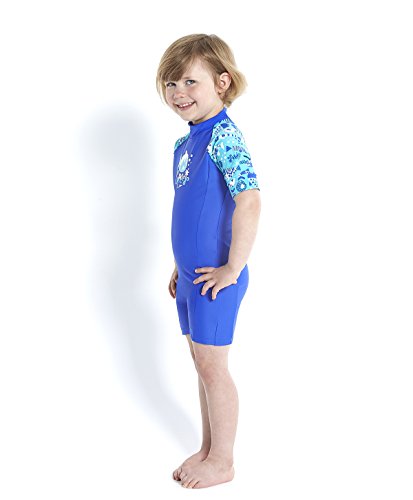 Speedo Girl's Essential All-in-One Suit - Funny Fish Deep Prism/Bali Blue, Size 2 is available in Bodysuits