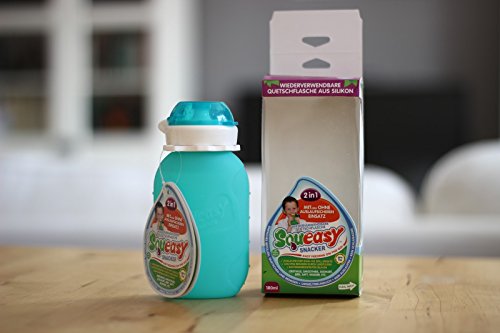 Squeasy Snacker 6oz, Aqua. The Durable Reusable Food Pouch. Easy to Fill and Clean, no Leaking. Homemade, Organic Food and Smoothie for Babies, Toddlers and Adults on the Go is available in Food Storage