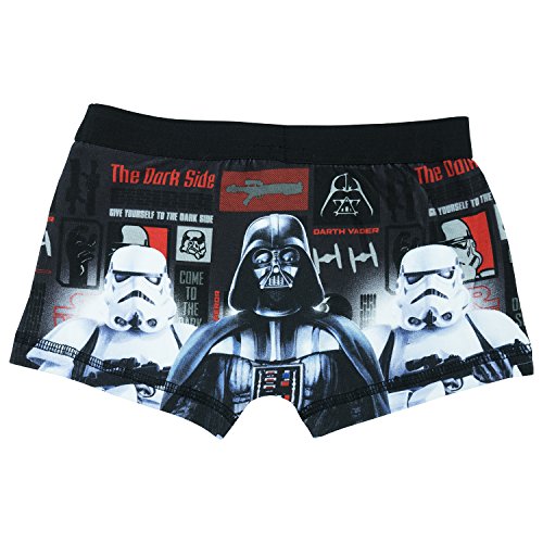 Any Star Wars fan will love these awesome boys boxer shorts. The front of the trunks have a striking image of Darth Vader and the Star Wars logo. The back of the boxer shorts has an awesome image of Vader flanked by his Stormtroopers. Made from 95% cotton and 5% elastane with an elasticated waist the boys boxers are fully machine washable at 40 degrees and can be ironed on a cool setting inside out. These fantastic Star Wars Dark Side Boys Boxer Shorts are available in sizes 4-5 years (110 cms), 5-6 years (116 cms), 7-8 years (128 cms) and 9-10 (140 cms). If you require any further detailed measurements please do not hesitate to contact us.