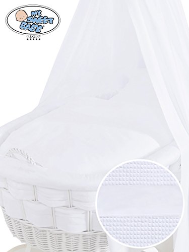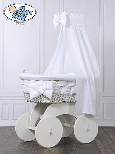 Stunning Handmade Large Wicker Crib With Big Wheels /White Drape / Moses Basket is available in Bassinets