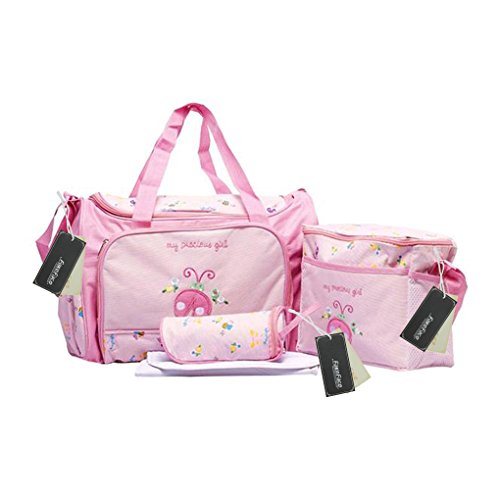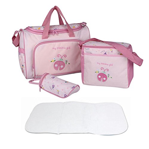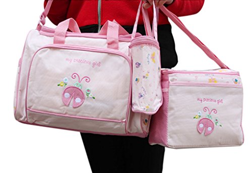 4pcs Stylish Designer Mummy Tote Waterproof Handbag Baby Diaper Nappy Changing Bag Set Nursing Messenger Bag Changing Mat Milk Bottle Holder Case is available in Satchels