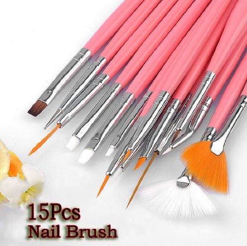 TOOGOO(R) 15pc Nail Art Design Dotting Brush Painting Pen Tool Set Pink Stick DIY Fit Tips.