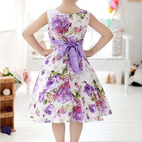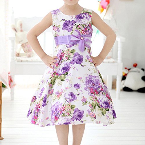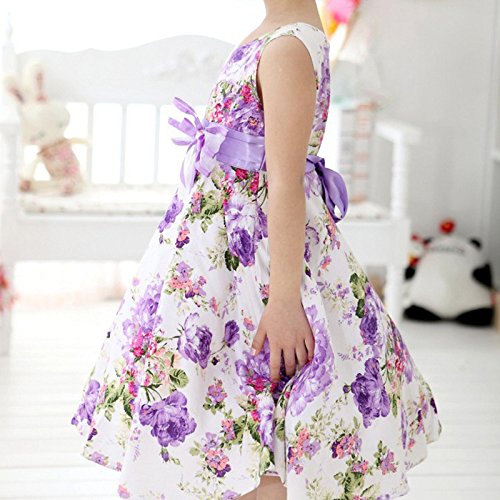 TOOGOO(R) Purple Summer Stylish Fancy Girls Kids Princess Wedding Party Flower Floral Bow Gown Dress 3-4Years