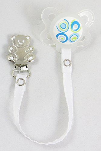 Girl Boy Teddy Bear Pacifier Holder Clip white Satin Dressy, Great for Nuk Avent.. (white) is available in Soother Chains