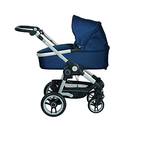 Kombikinderwagen mit kompaktem Aluminium-Gestell mit kratzresistenter Eloxalbeschichtung, Schwenkschieber und umdrehbarere Sportwagensitzeinheit zur schnellen Änderung der Blickrichtung.