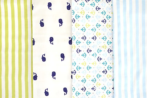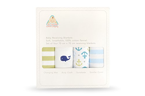 The Swaddle Cotton Company BG41 100 Percent cotton Flannel Baby Receiving Blanket (76 x76 cm, Blue, Green, Nautical and Whale design, Pack of 4) is available in Sheets