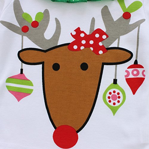 TiaoBug 2pcs Baby Girls Christmas Santa Cartoon Deer Ruffle T-shirt Tops Striped Tutu Pants Sets White 2-3 Years is available in Outfits & Clothing Sets