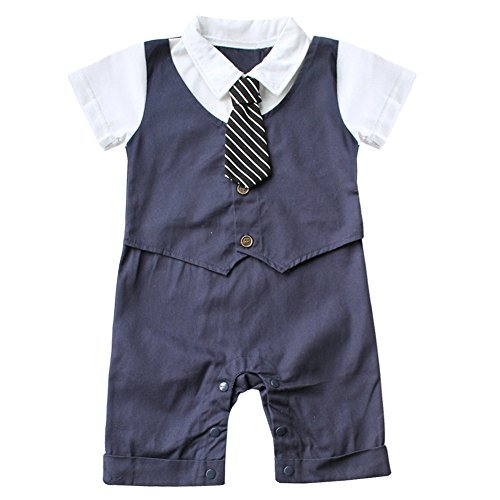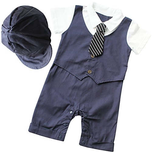 TiaoBug Baby Boys Gentleman Romper Jumpsuit Suit Hat Bowtie Communion Party Bodysuit Clothing 12-18 Months Navy Blue is available in Rompers