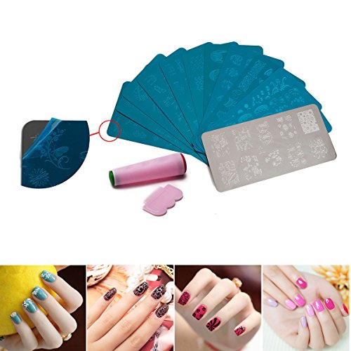 10 * Nail Art Stamping Printing Plate Manicure Stamping Image Plate Templates with Stamp (Silver)