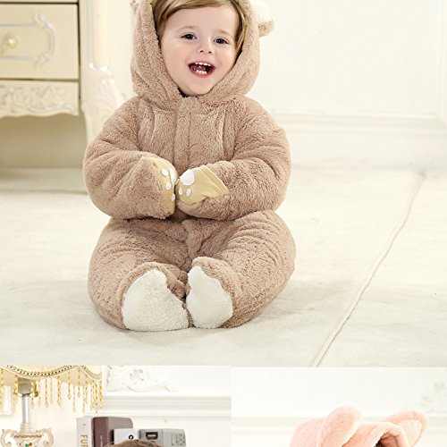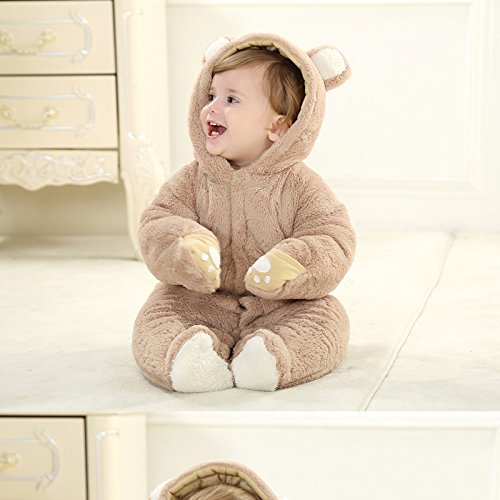 Unisex Toddler All in One Snowsuit Fleece Romper Hooded Cartoon Anime Cosplay Bodysuit BBYF-A (height 100cm, brown) is available in Rompers