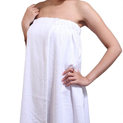 TopTie Women's Cotton Terry Spa Shower Bath Towel Wrap Velcro Closure on Chest - White,S/M is available in Robes