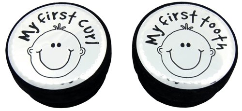 New Baby Unisex Boy Girl Gift 4 Piece Keepsake Set, First Curl and Tooth Box, Hand and Footprint Prints Kit (SHINY SILVER/BLACK) is available in Gift Sets