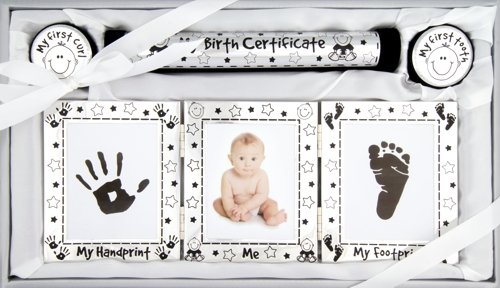 Includes baby-safe ink prints kit that takes Black colour hand and footprints - comprising of black ink pad and papers. (Prints can be created on any paper, you can create lots of handprints and footprints of your baby using the ink pad). Ink pad conforms to ASTM D 4236 and is safe for use on your baby's skin from birth.