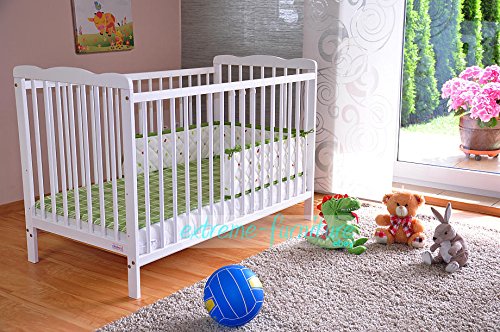 NEW WHITE SOLID WOOD EMILY BABY COT & DELUXE 4 inch FOAM MATTRESS - ?3 Position Base Heights ?4 inch Mattress ?RRP£190 (White) is available in Cots