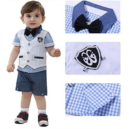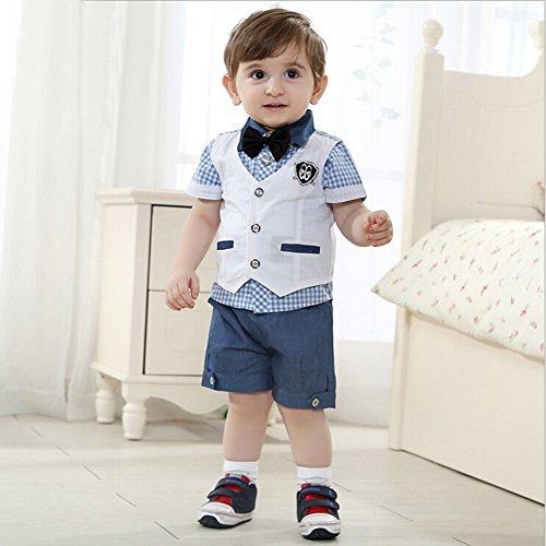 Wawoo®Fashion Gentleman Baby Boys Outfits Suits Clothing 3pcs Cotton Short Sleeve Shirt Waistcoat Short Pants Children's Summer Clothes is available in Christening Gowns
