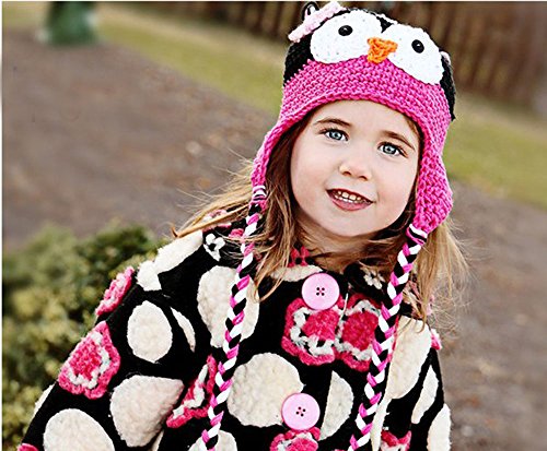 Womdee(TM) Cute Handmade Toddler Baby Boys Girls Owls Crochet Knit Woolly Cap Ear Flap Hat-Black&Roseo With Womdee Accessory Necklace is available in Hats & Caps