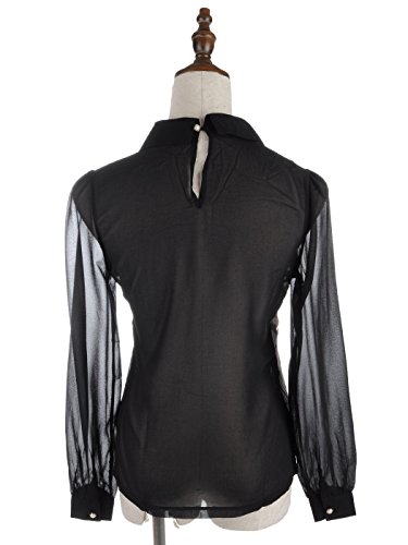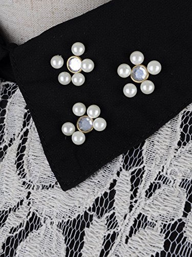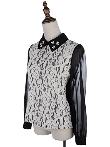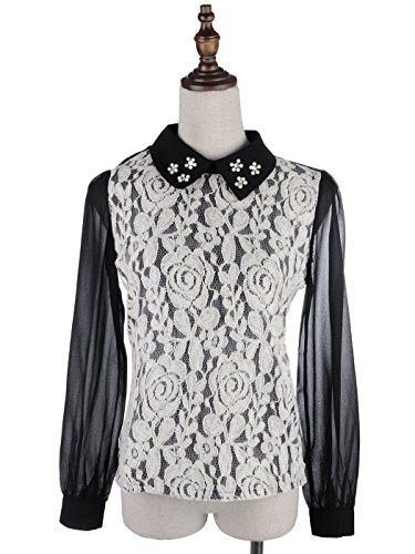 Anna Kaci Womens S/M Fit Lace Overall Pearl Decorated Collar Top Black is available in Blouses & Shirts