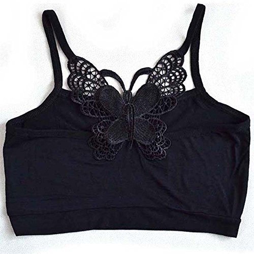 Women's Tank Top Spaghetti Strap Bandeau Sleevless Back Lace Butterfly Design One Size Black is available in Tank Tops