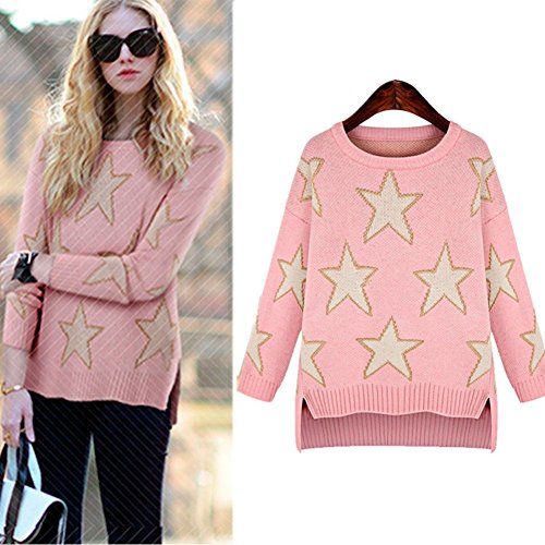 YQ08 2015 Autumn The New Long sleeve Star Loose Sweaters (S, PINK) is available in Trailers