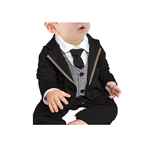 ZOEREA Infant Toddler Boy Baby Tuxedo Onesie With Necktie Gentleman Romper Jumpsuit Outfit Plaid Striped Clothes Great Costume for Special Occasions like Halloween, Christmas is available in Suits & Blazers