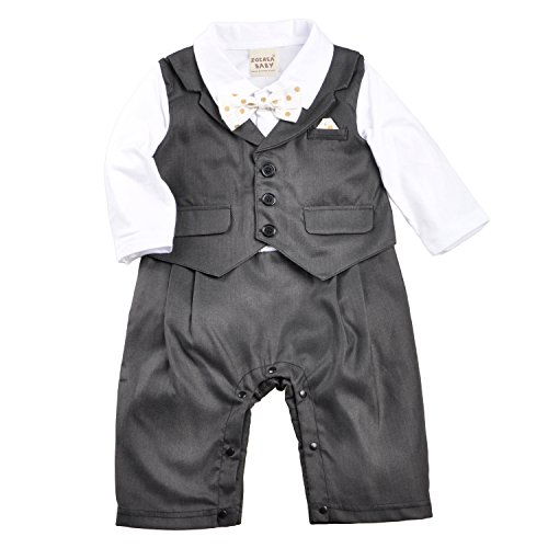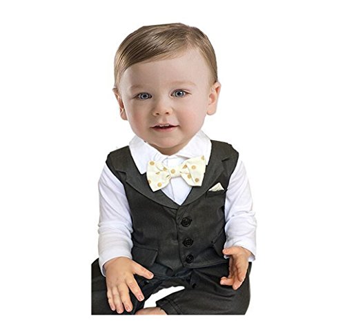 ZOEREA Newborn Infant Toddler Boy Babys Long-sleeved Cotton Gentleman Cute Black Vest Tuxedo Romper Jumpsuit Clothing With Yellow Polka Dot Bowknot(Size 80) is available in Suits & Blazers