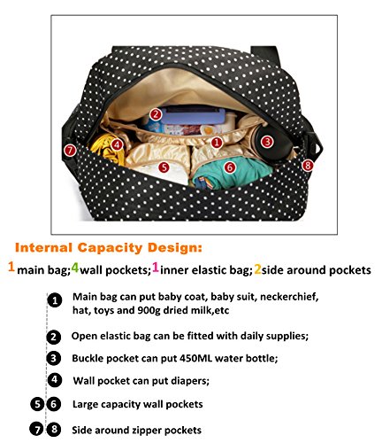 ZeleToile® Multifunctional Large Capacity Baby Diaper Nappy Changing Bag Backpacks shoulder bag Mummy Changing Set Handbag Tote Backpack - Black Dot Fashion is available in Totes