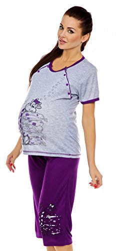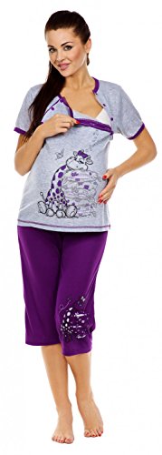 Zeta Ville - Women's Maternity Nursing Pyjamas Soft Jersey Cartoon Print - 202c (Purple, UK 8) is available in Sets