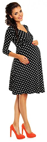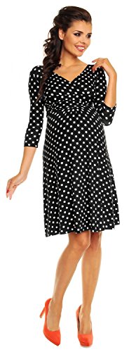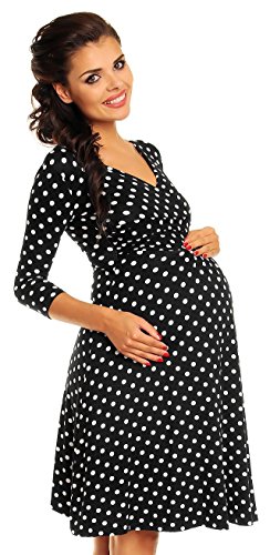 Zeta Ville Women's Maternity Wrap V-neck Polka Dot Dress Summer Spot Dress 017c (Black with Dots, UK 6/8) is available in Dresses