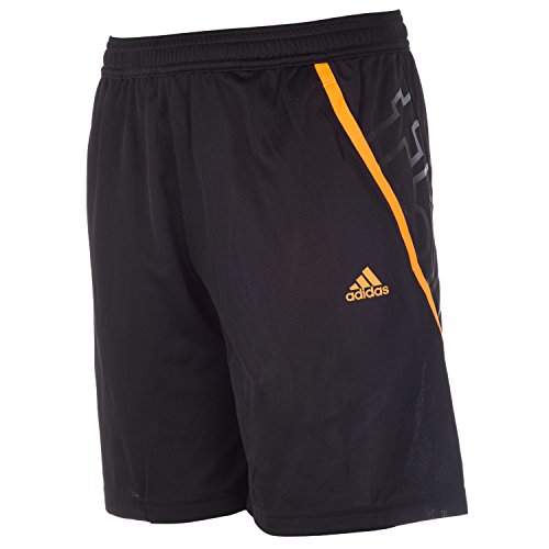 Junior Boys adidas F50 Training Short in Black.These shorts from popular label adidas are a bargain buy with a great discount and an affordable price. These shorts come in black and feature the adidas three stripes on either side. The middle of the left leg features the adidas branding, 2 slip pockets, elasticated waist with drawstring ties, mesh lined, 100% Polyester – Machine Washable.