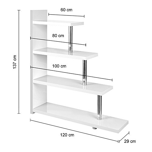 Step bookcase/Room Divider/Wall Shelf in White High Gloss Bookcase with 4 Shelves is available in Shelves