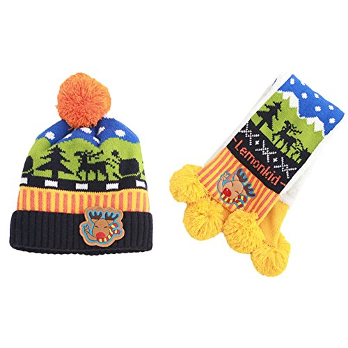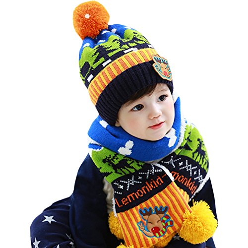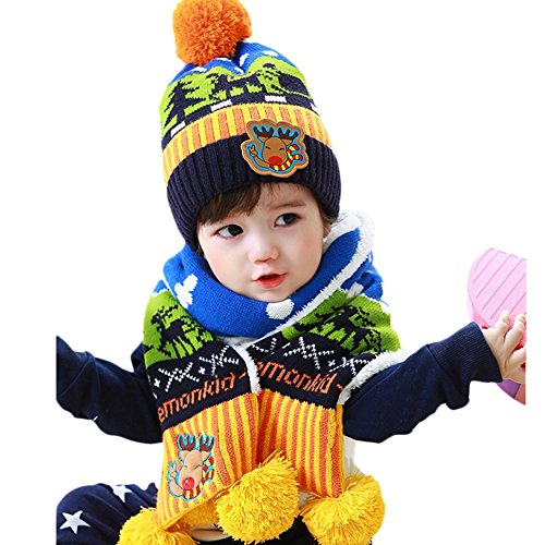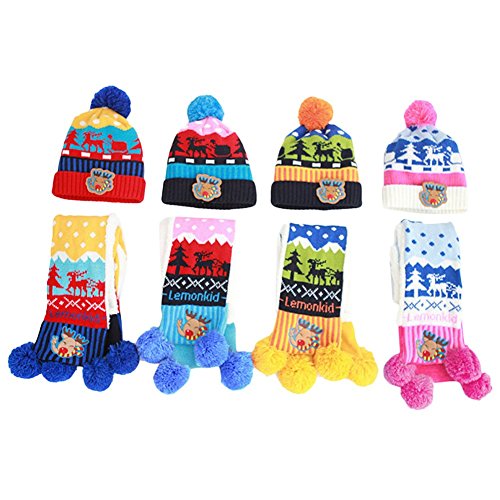 iikids®Baby Boys/Girls Winter Beanie Cap Childrens Warm Wool Knitting Hem Lined Fur Pom Pom Hat+ Scarf+ Mittens 3 in 1 Set for Kids 8-12M/1-2T/2-4T/4-8T is available in Neckerchiefs