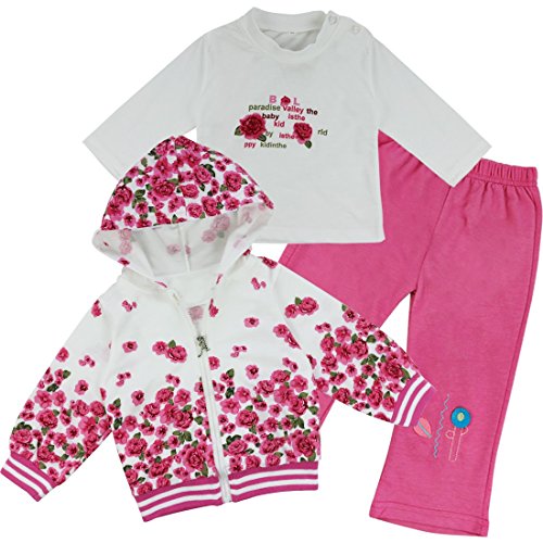 iiniim 3pcs Baby Girls Peony Coat + Long Sleeve T-shirt+ Pants Clothes Outfit Set Hot Pink 18-24 Months is available in Outfits & Clothing Sets