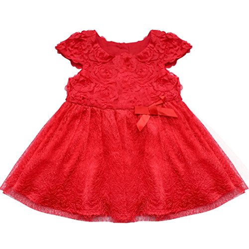 iiniim Baby Girl's Rose Flower Wedding Princess Dress Kids Formal Pageant Christening Dresses Red 9-12 Months is available in Dresses