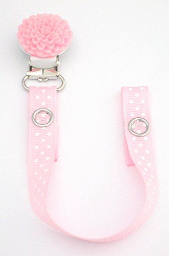 pacifier dummy holder clip for girls (pink polka dots -flower) is available in Soother Chains