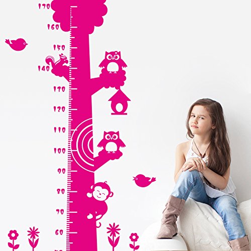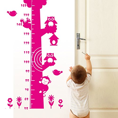 ufengke® Big Tree Cute Owls Monkey Height Chart Decals, Children's Room Nursery Removable Wall Stickers Murals, Pink is available in Height Charts